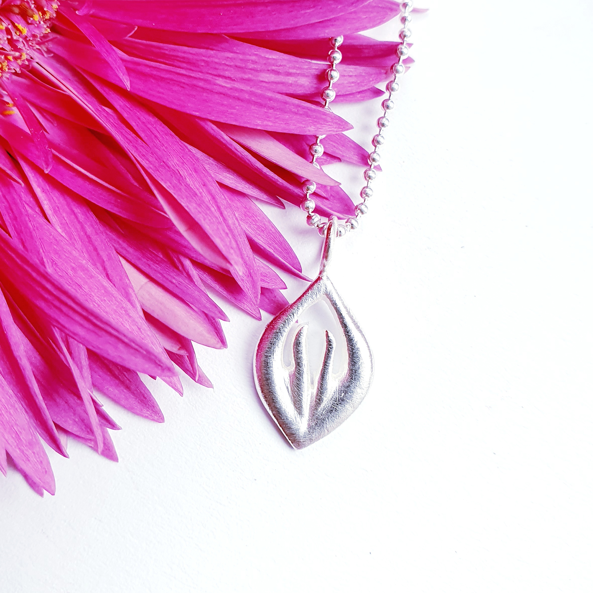 Diesen außergewöhnlichen Anhänger mit einem stilisierten Namaste-Gruß habe ich in meiner Schmuck-Manufaktur aus 925 Silber für Dich von Hand gefertigt. Die Oberfläche des silbernen Namaste-Symbols ist edel mattiert.