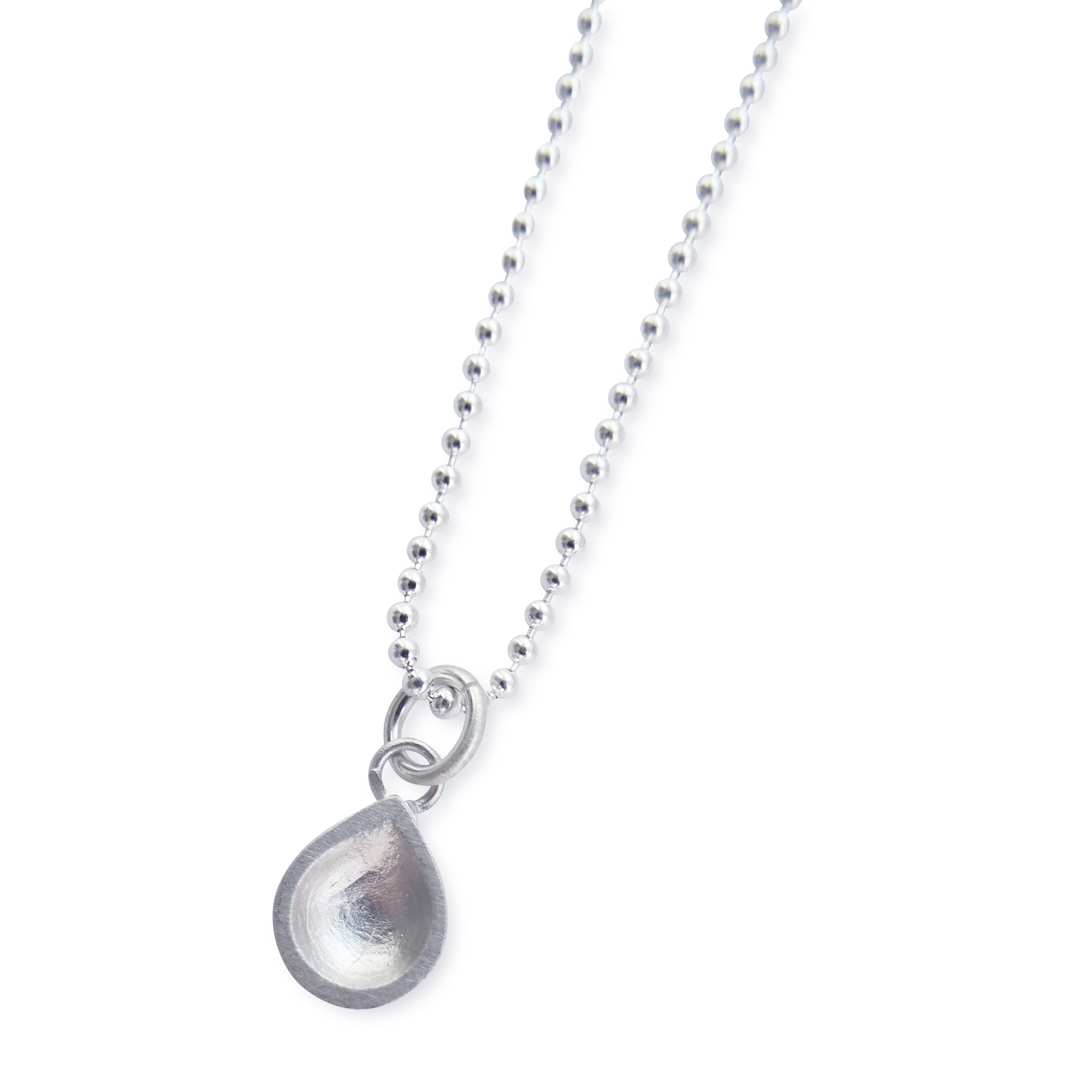 Diesen zarten Tropfen habe ich in meiner Schmuck-Manufaktur aus 925 Silber für Dich handgefertigt. Die Oberfläche des silbernen Tropfens ist edel mattiert.