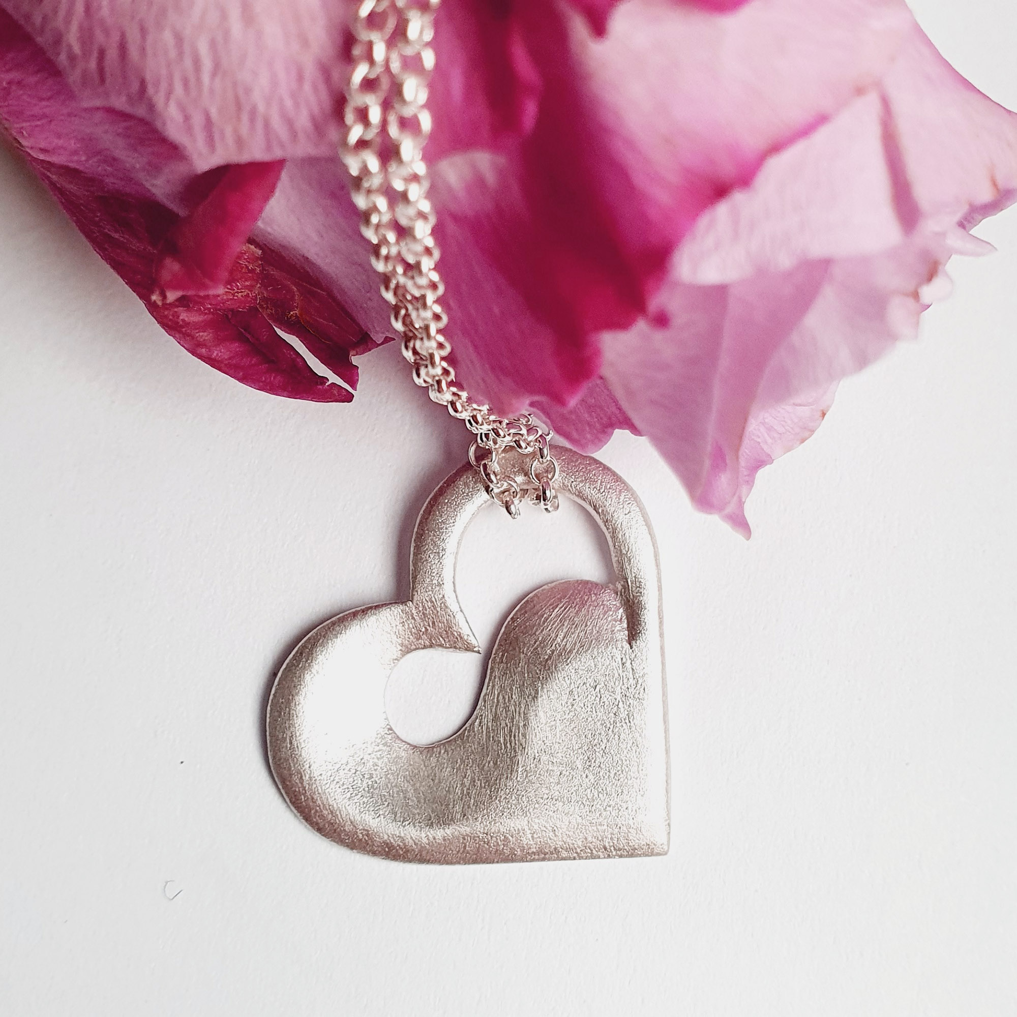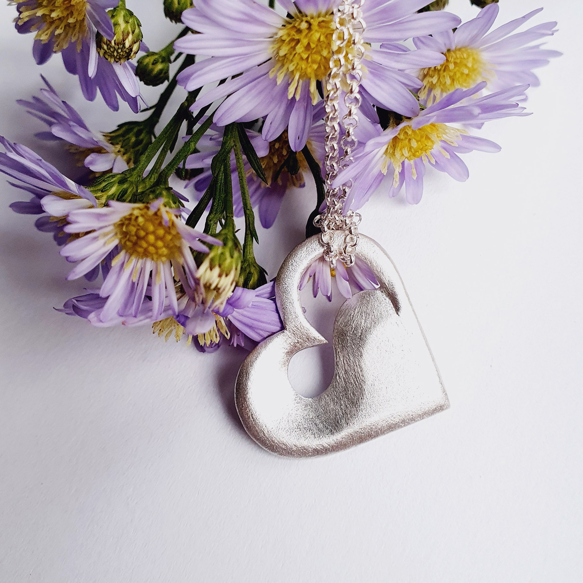 Dieser handgefertigte Herz-Anhänger mit einer stilisierten Welle entsteht in meiner Schmuck-Manufaktur aus echtem 925 Silber individuell für Dich. Die Oberfläche des silbernen Herzens ist edel mattiert.