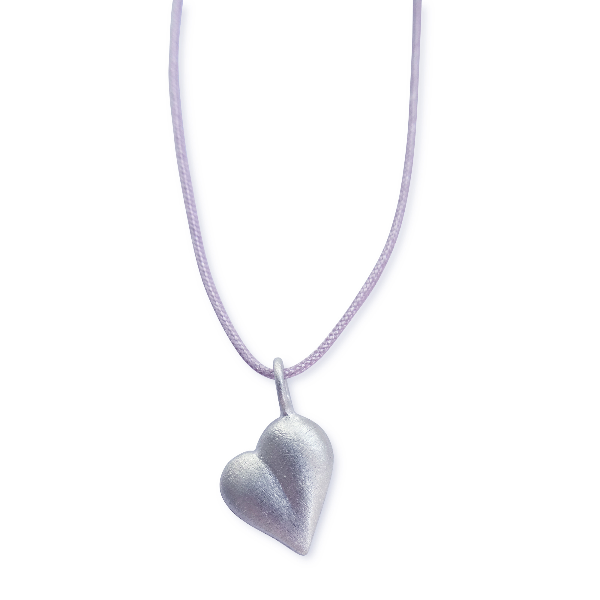 Diesen Herz-Anhänger habe ich in meiner Schmuck-Manufaktur für Dich von Hand gefertigt. Der Herz-Anhänger ist aus echtem Silber, die Oberfläche des silbernen Herzens ist edel mattiert. Der Anhänger wird an einem längenverstellbaren Band aus Fallschirmschnur geliefert, das in verschiedenen Farben erhältlich ist.