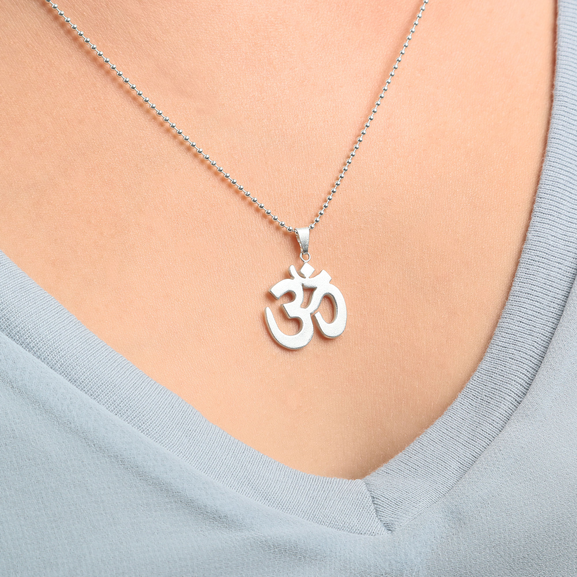 Der handgearbeitete Om-Kettenanhänger eignet sich perfekt als Symbolschmuck für Yoga-Fans. Das silberne Om ist ein ideales Geschenk für alle, die Yoga praktizieren, das symbolisch mit ihrem Schmuck ausdrücken und die Symbolkraft des Om-Zeichens nutzen möchten. Denn die Om-Silbe steht unter anderem für den Zustand der tiefsten Ruhe und sorgt so für einen wichtigen Ausgleich in einer hektischen Welt. Der Om-Anhänger aus 925 Silber ist in jeder Stilrichtung einsetzbar: Lässig an Stoff, Leder oder Natursteinen, modern-elegant an Silberketten. Auch in Kombination mit weiteren Ketten im Layering-Look sieht das silberne Om sehr hübsch aus.