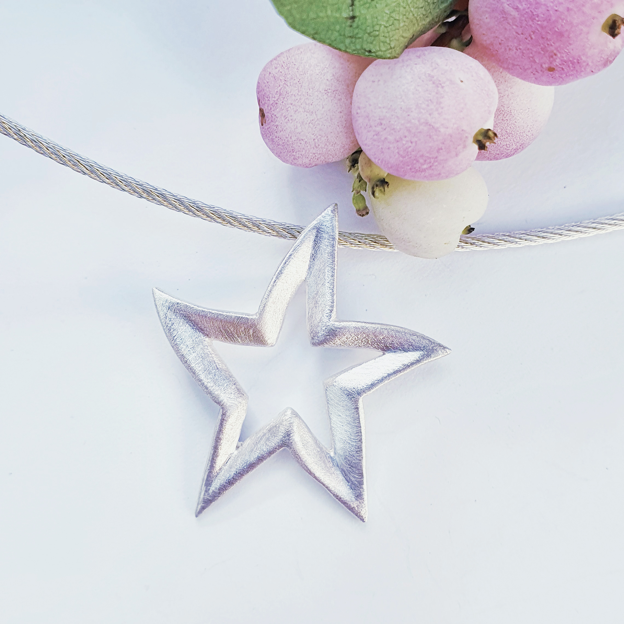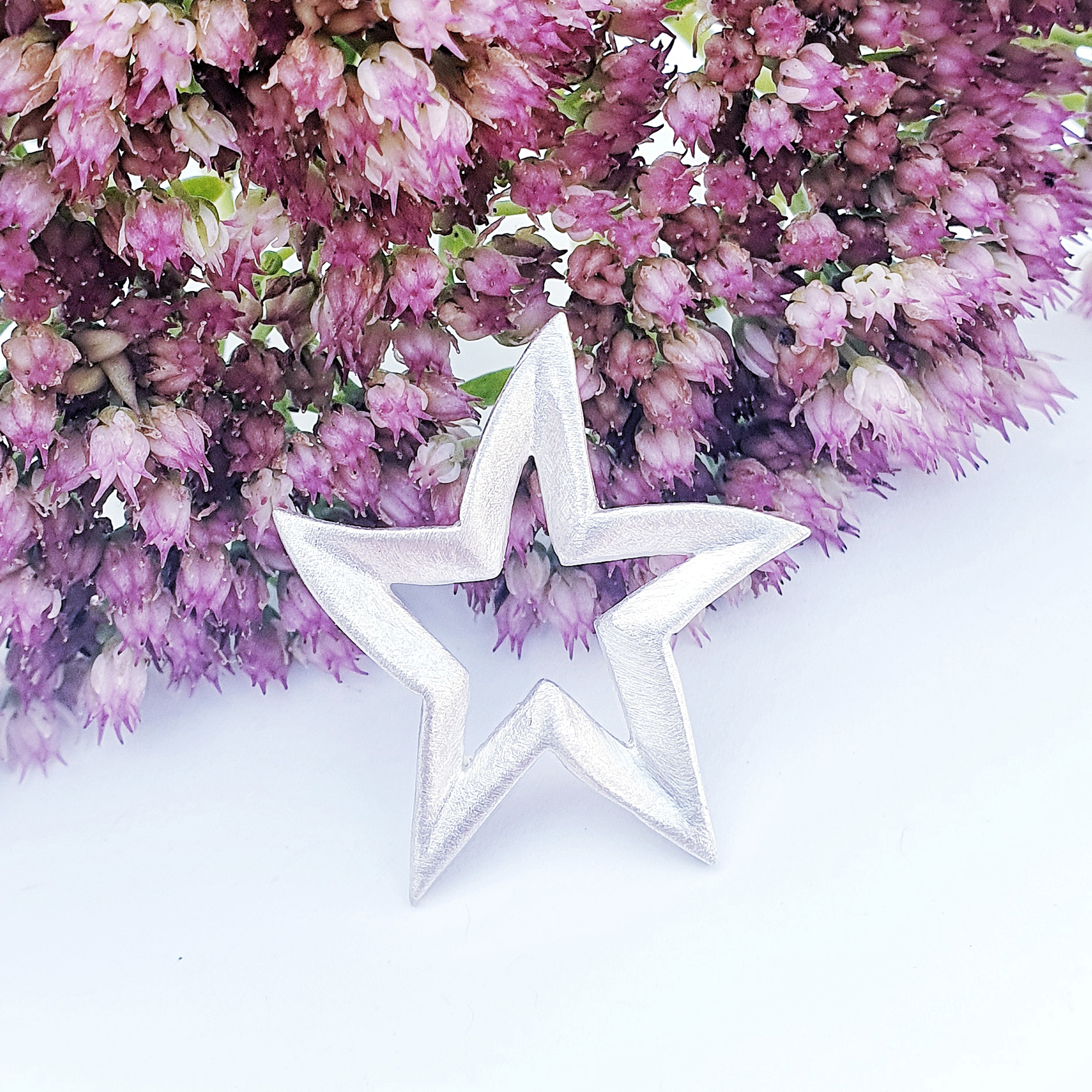 Diesen wunderschönen Stern-Anhänger habe ich in meiner Schmuck-Manufaktur aus 925 Silber für Dich in Handarbeit gefertigt. Die Oberfläche des silbernen Sterns ist edel mattiert.