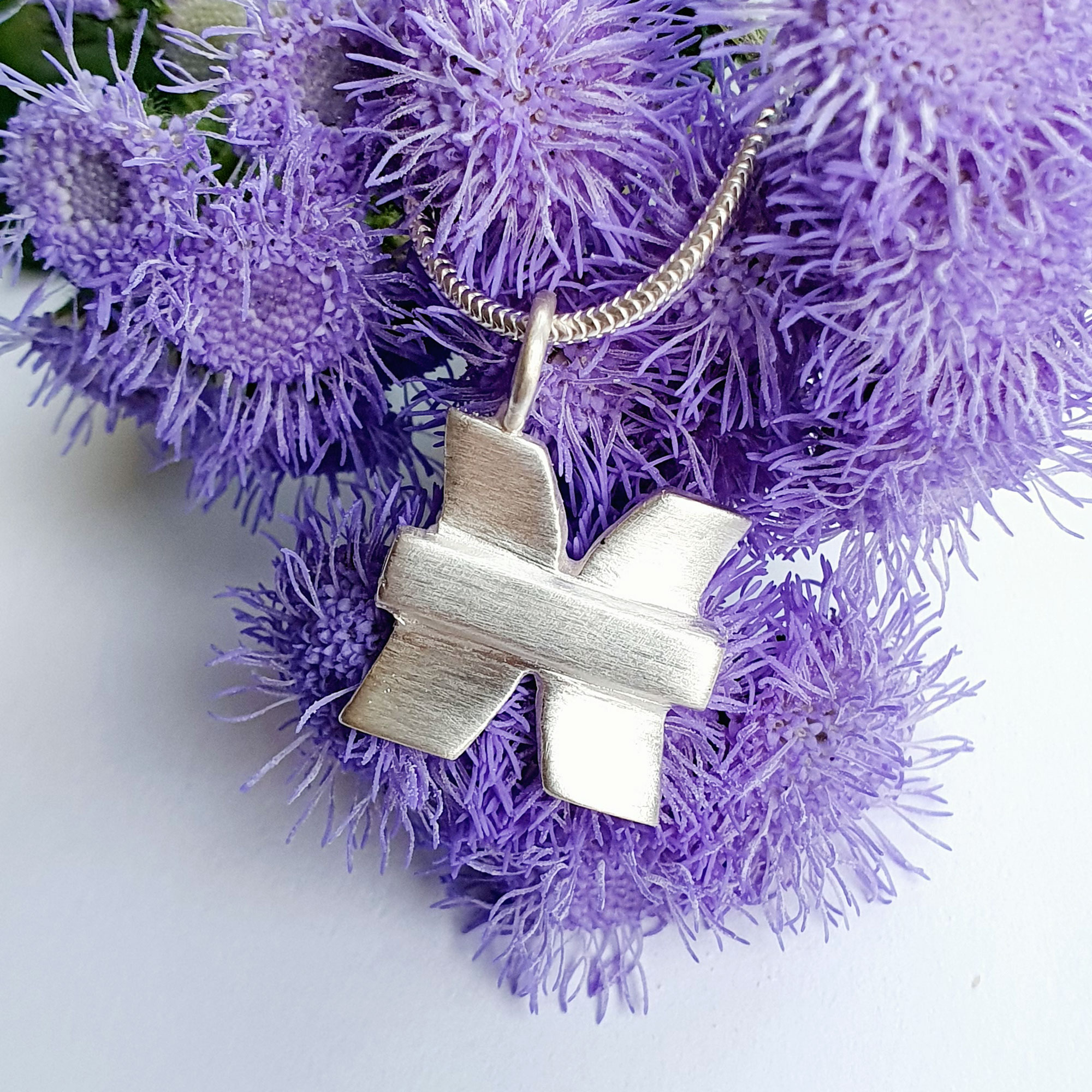 Diesen ausgefallenen Sternzeichen-Anhänger, der das Sternzeichen Fische symbolisiert, habe ich in meiner Schmuck-Manufaktur aus 925 Silber für Dich von Hand gefertigt. Die Oberfläche des silbernen Fische-Sternzeichens ist edel mattiert.