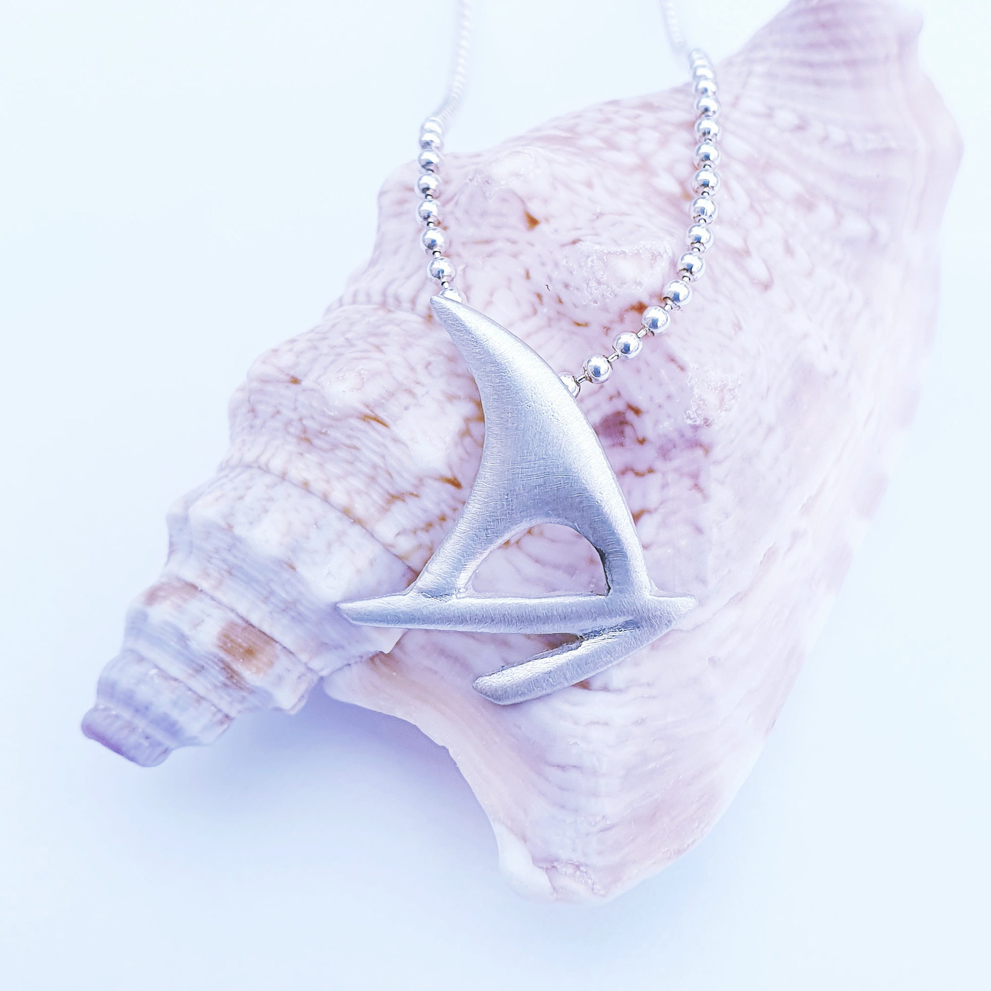 Der Kettenanhänger ist 20 Millimeter hoch und 18 Millimeter breit. Der Surfer-Schmuck kommt sowohl an einer Silberkette als auch an einem Leder-, Stoff- oder Kautschukband schön zur Geltung.