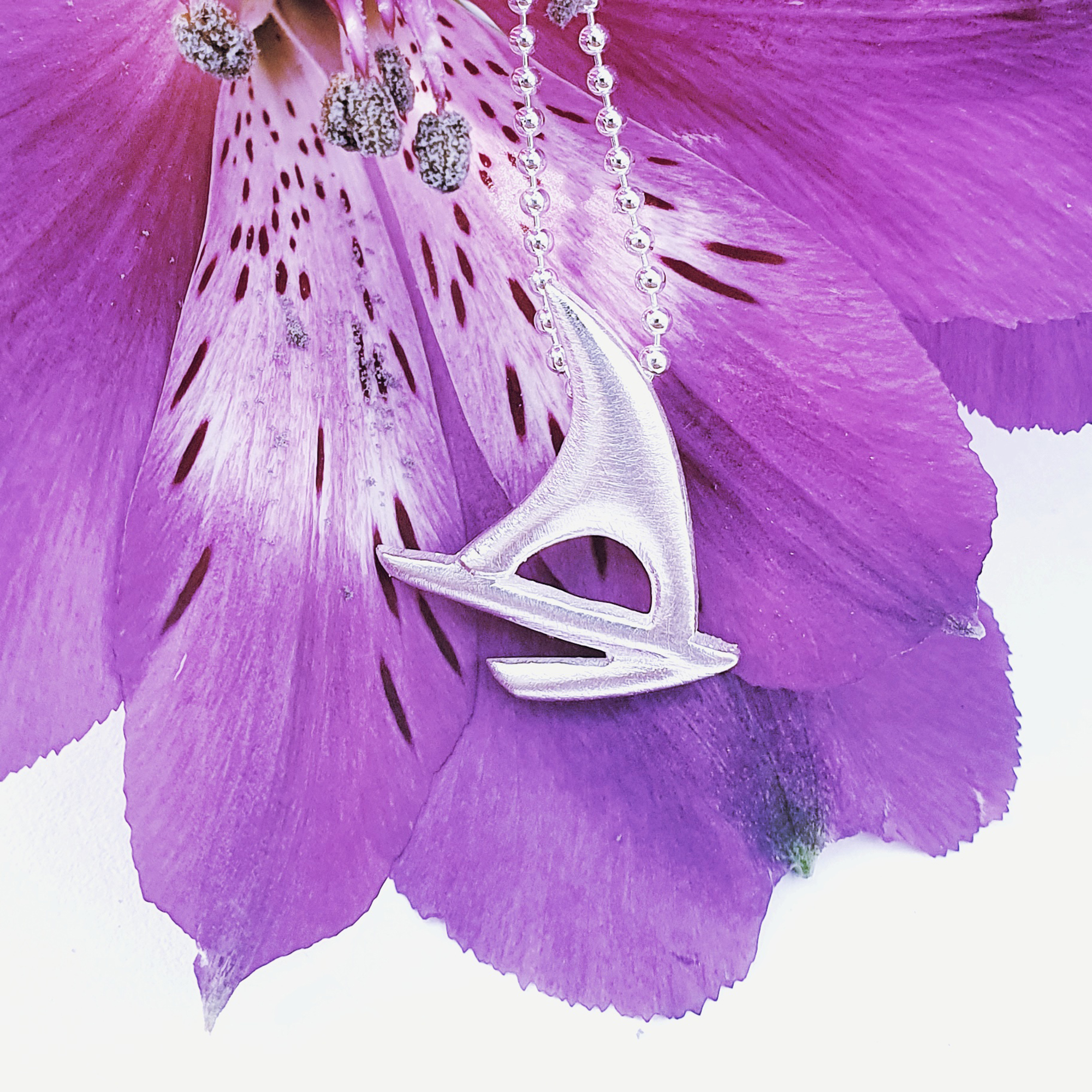 Diesen ausgefallenen Surfer-Anhänger fertige ich in meiner Schmuck-Manufaktur individuell für Dich. Der Windsurfer ist aus echtem 925 Silber, die Oberfläche des silbernen Surfers ist edel mattiert.