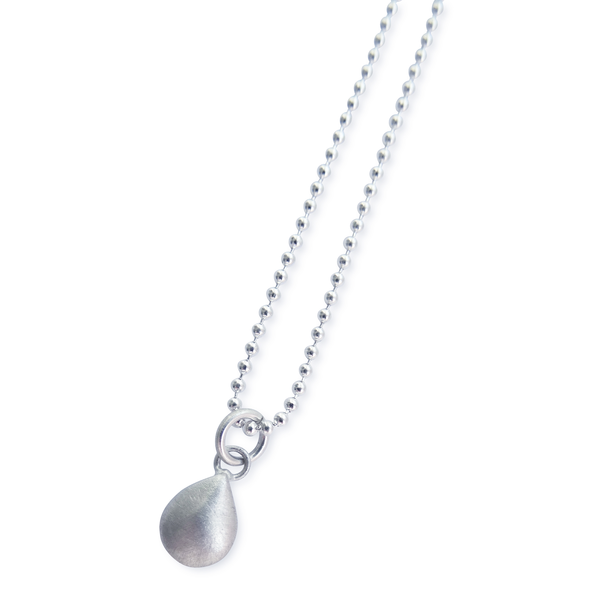 Diesen zarten Tropfen habe ich in meiner Schmuck-Manufaktur aus 925 Silber für Dich handgefertigt. Die Oberfläche des silbernen Tropfens ist edel mattiert.